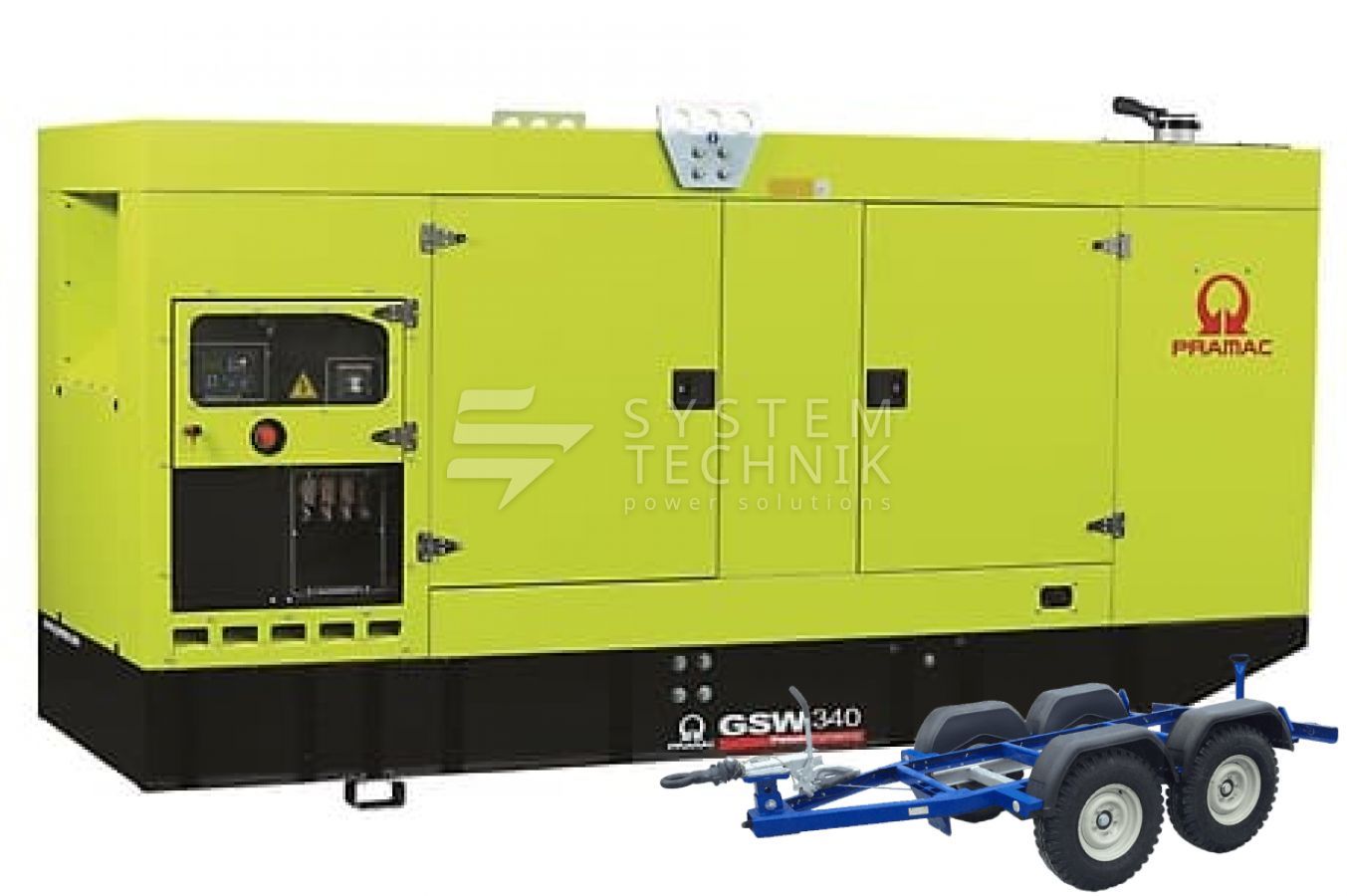 - Дизельный генератор Pramac GSW 340 P 400V В кожухе на прицепе