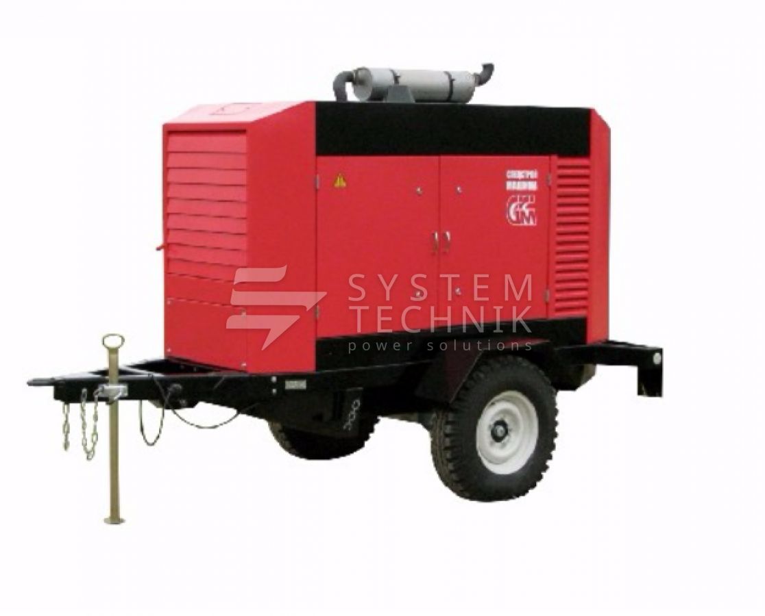 - ССМ ЭД-60-Т400-1РПМ1 в погодозащитном кожухе на шасси на прицепе