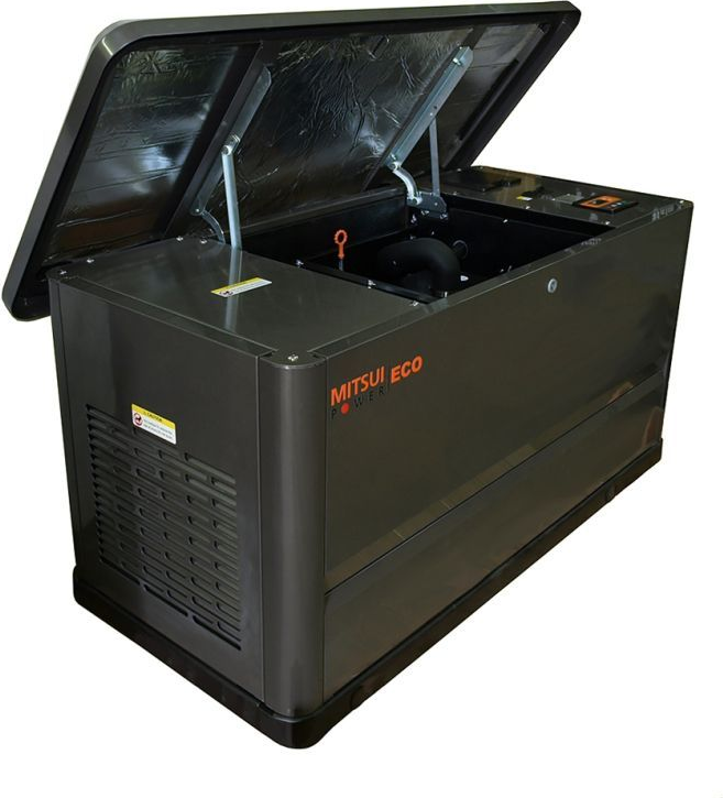 Трехфазная газовая электростанция в шумозащитном кожухе Mitsui Power GM 13000 с АВР изготовлена на базе двигателя Mitsui R999D с воздушным охлаждением. Генератор предназначен для организации автономного электроснабжения домов, небольших коммерческих, социальных и бытовых объектов.